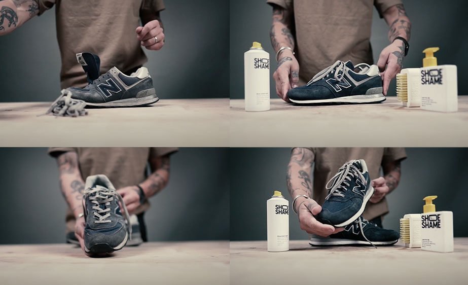 1. Ta ur skosnören och borsta bort ytlig smuts.